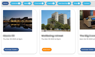 From the dashboard, check up on your events, and the totals and percentage sold. Click through from here to look at the details, and to edit the events. Every time you save, your page updates automatically.